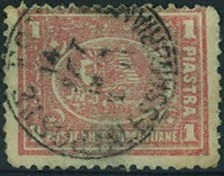 | 53 | 1876 1877? Amministrazione delle Poste Khedivie, Italian-language receipt 112x153mm cancelled with medium-faint CDS of Poste Egiziane / Cairo / Cassa of 26 Giu year? Handwritten notation is 1876. Ornate wmk, tiny filing holes, otherwise perfect  | £20.00 |