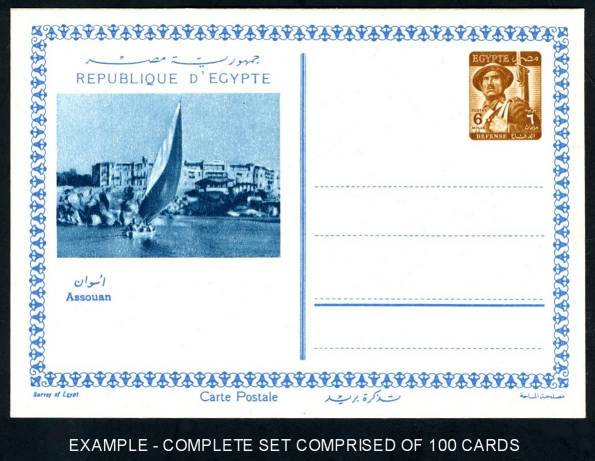 | 684 | 1954, 6 mills Soldier definitive-imprinted Republican Tourist Views cards, the complete set of 100, 25 different views, each printed in a series of cards, in blue, brown, green & violet. Even as single views these are quite scarce (normally selling for £11-£15, more than their understated Balian catalogue valuations). Virtually unobtainable as a full series. Very few complete sets in this condition! NP SPC43-SPC46 (full series), Balian 44a-44d (full series), Higgins & Gage 42a-45a  | £1300 |