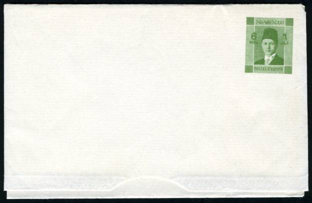 | 687 | 1939, 6 mills yellow-green Farouk letter sheet, offset- lithographed, wmk. reads diagonal/down (NP SLS12). Stunning  | £55.00 |