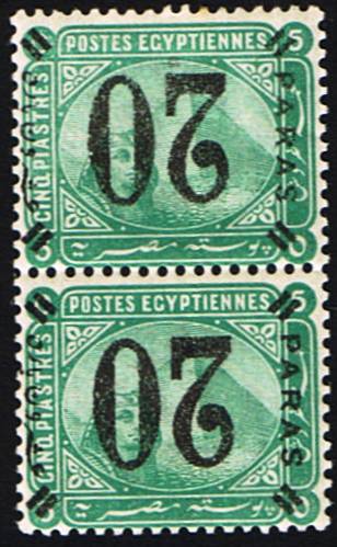 | 1 | 1884 provisional surcharge 20 para on De La Rue 5-piastre green, quite remarkable vertical pair with inverted surcharge (SG 57a, NP 40a). Mint with gum, signed behind and slightest of hinge traces, one of them making a most discreet thin. Outstanding appearance  | £48.00 |