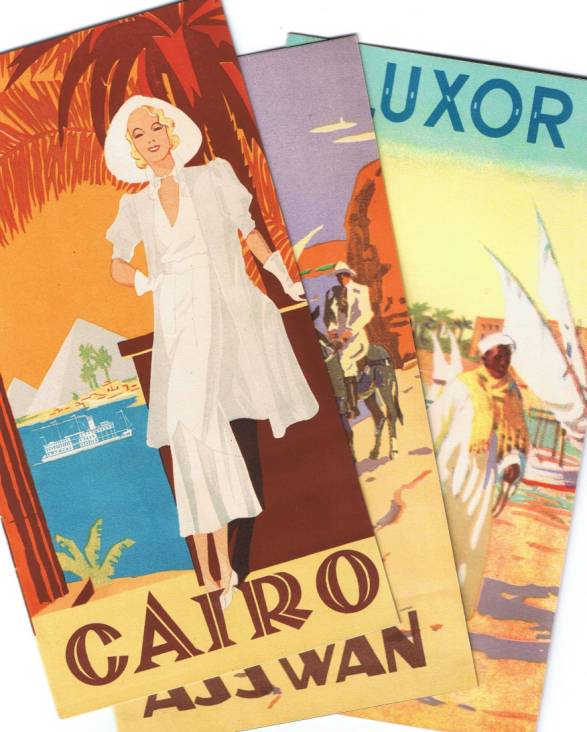 | 20 | 1948, three wonderfully atmospheric tourist brochures, 11x21cm, each eight pages inside Art Nouveau watercolour paintings on front and back card cover. Listing the delights of Cairo, Asswan and Luxor. Excellent condition, near-pristine  | £12.00 |