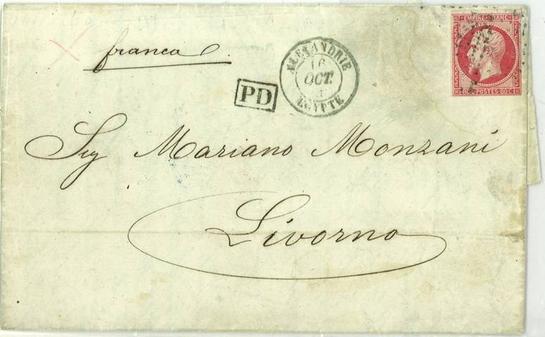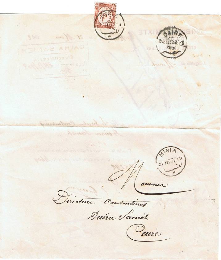 | 21 | 1894, visiting-card envelope addressed to Mr and Mrs L Steinschneider, manager of Continental Hotel, franked DLR 2m stamp and cancelled Alexandria 1 I 1894 | £2.50 |