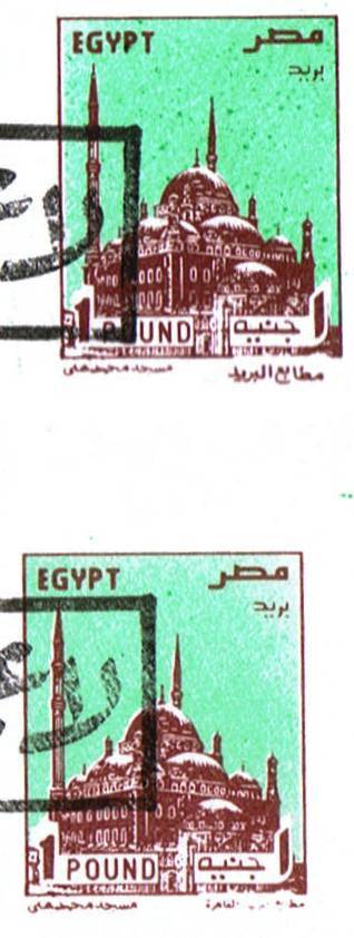 | 616 | 2001, 30pi Official, var, no wmk and major horizontal misperf, shifted 4mm downward so that Egypt and misr are at the bottom instead of the top of the stamp. Mint NH vertical pair | £12.00 |