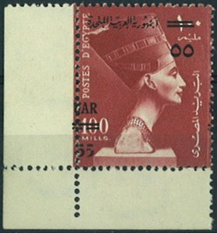| 2 | 1969, Nasser 200 mills definitive (SG 1045, NP 298), top left corner single, UMM, with unrecorded but prominent flaw diagonally in front of Nasser’s forehead  | £15.00 |