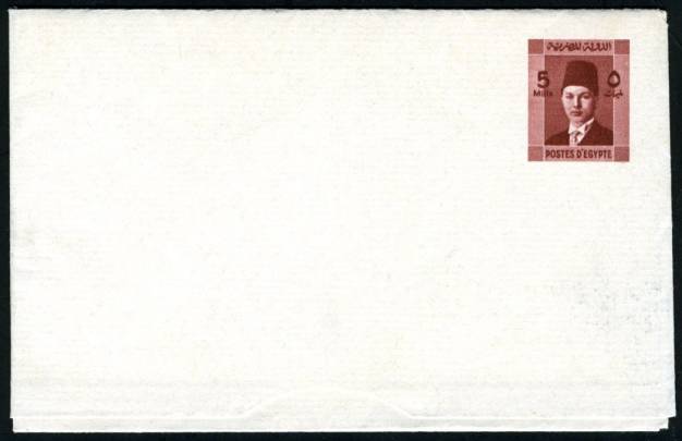 | 686 | 1939, 5 mills red-brown Farouk letter sheet (NP SLS11). Stunning  | £45.00 |