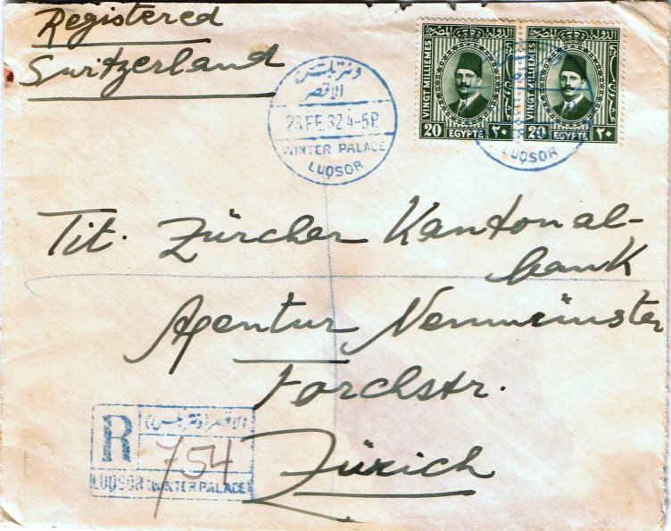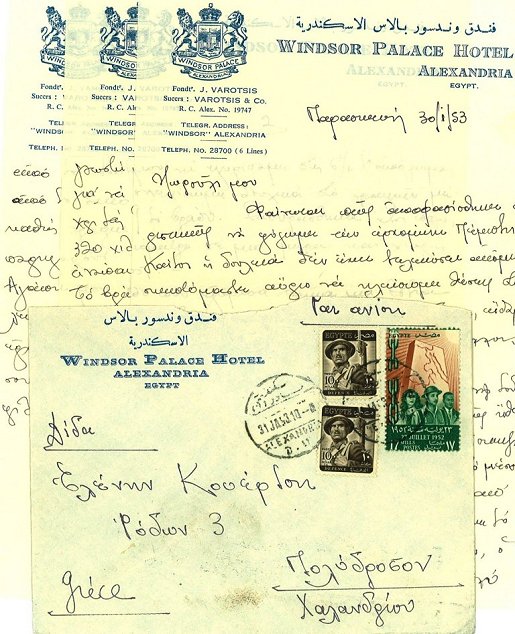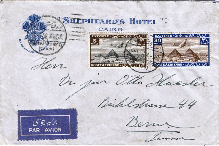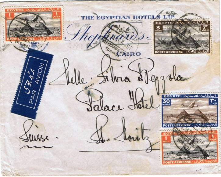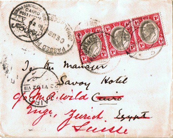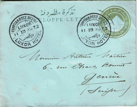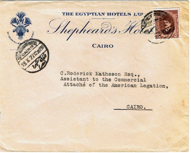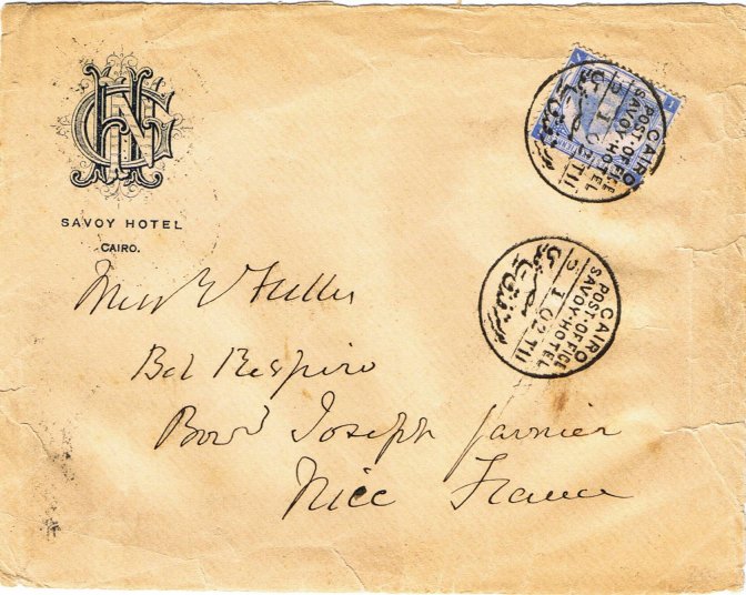 | 81 | Savoy Cairo – Hotel logo-printed stationery franked 1pi blue for France, perfect strike HSA2 of 6 I 02 TII. Unfortunately, front only but spectacular  | £8.00 |