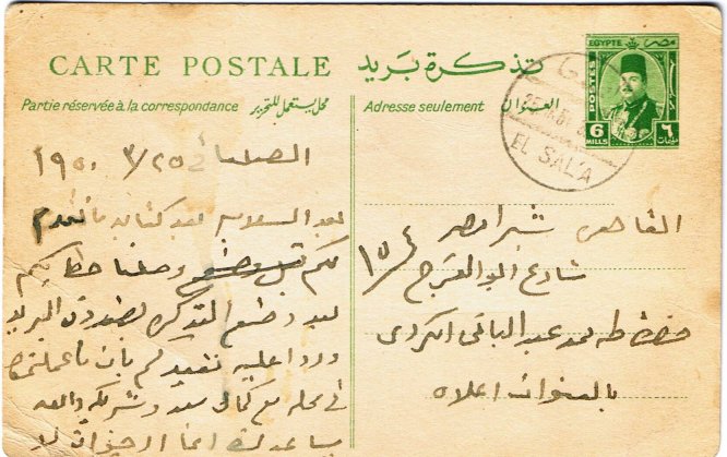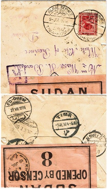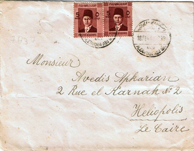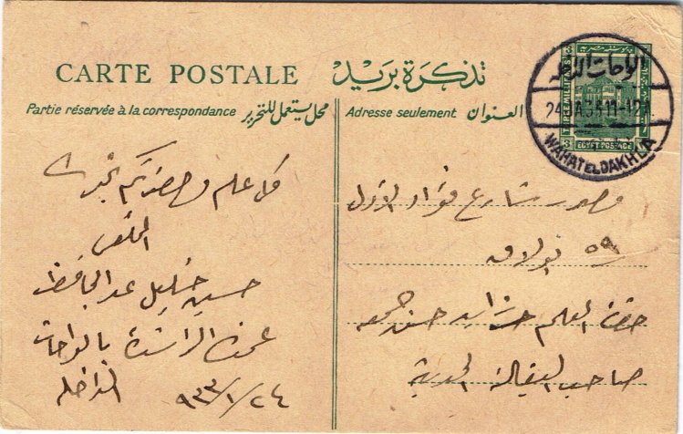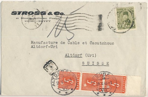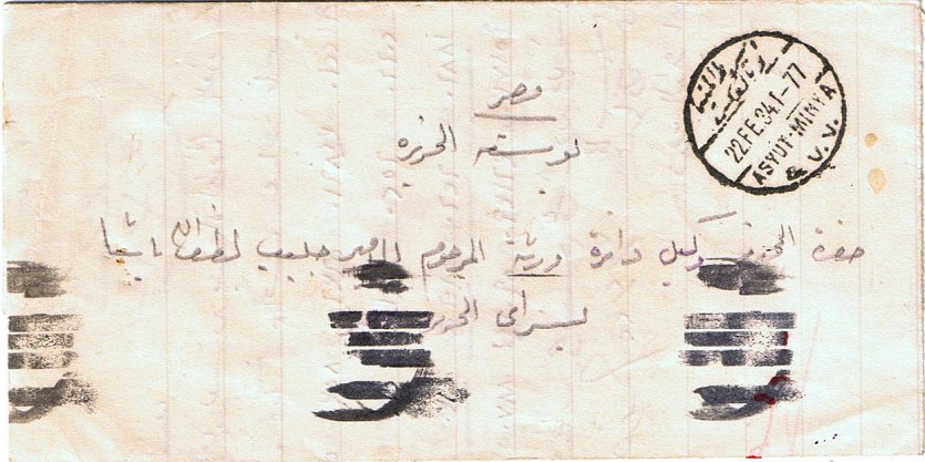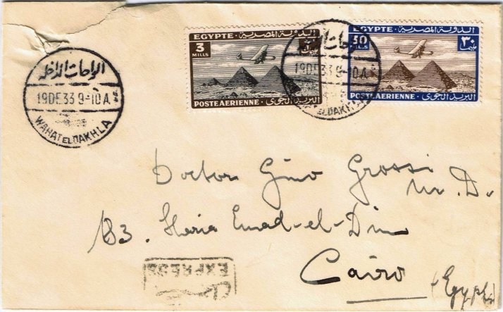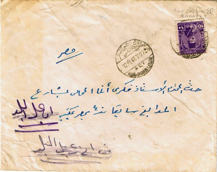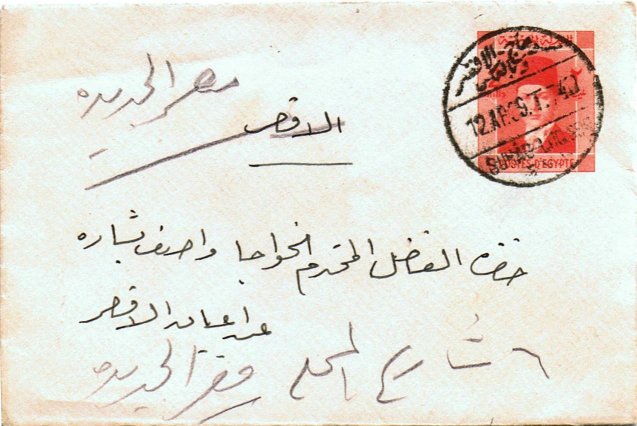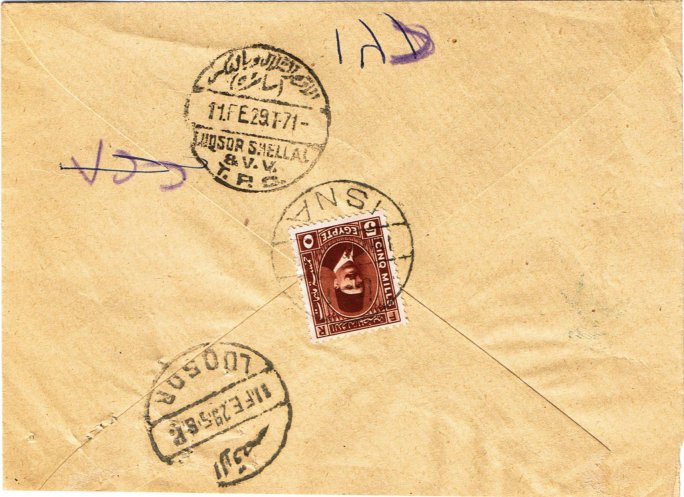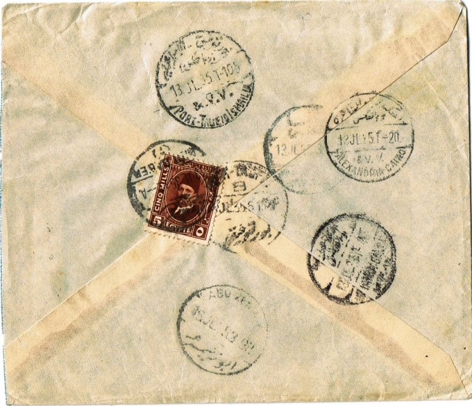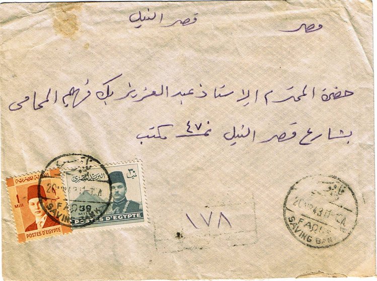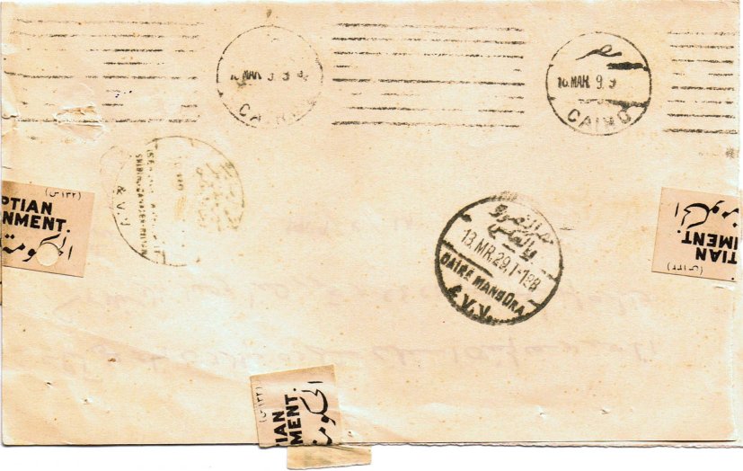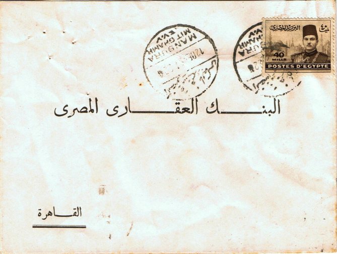 | 727 | 3 II 27 Rural Service cover Samalut-Daquf to France with 3x Fuad First set 5 mills, cartouche Qutusha. Untidy back. | £3.00 |