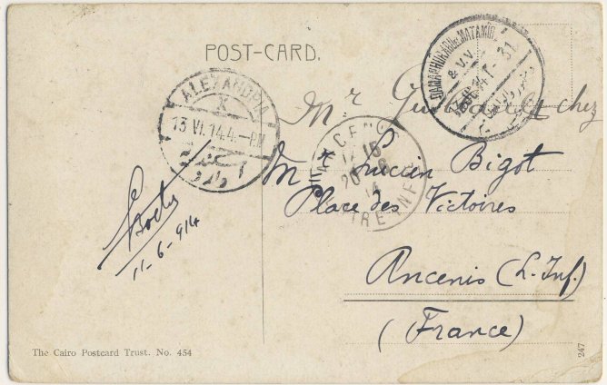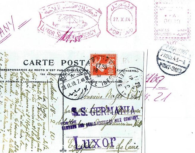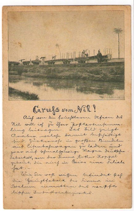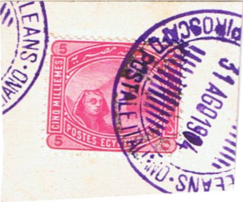 | 700 | 1904 B&W ppc franked 5 mill DLR stamp tied KOSSEIR star & crescent cds 22 JL 04 with KENA transit cds 25 VII 04 to England. | £4.50 |