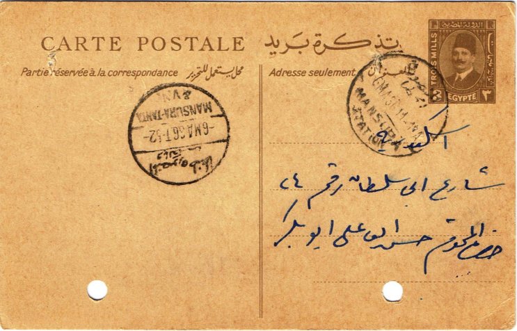 | 73 | 3 mills (2 + 1 mill) internal postcard with clear MANFALUT postmark | £19.00 |