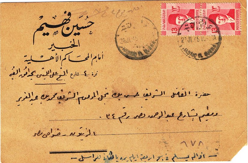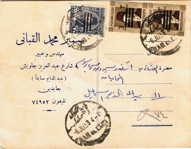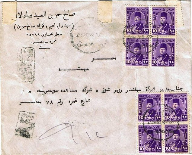 | 74 | 26 mills (13 x 2 mills), internal Express letter post with POSTMEN CAIRO on reverse | £32.00 |