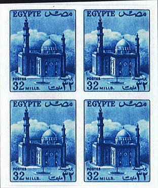 | 743 | 1953. First post-Revolution pictorial issue, block of four of 32m blue Mosque imperforate (NP D202a), in pristine condition. Scarce  | £75.00 |