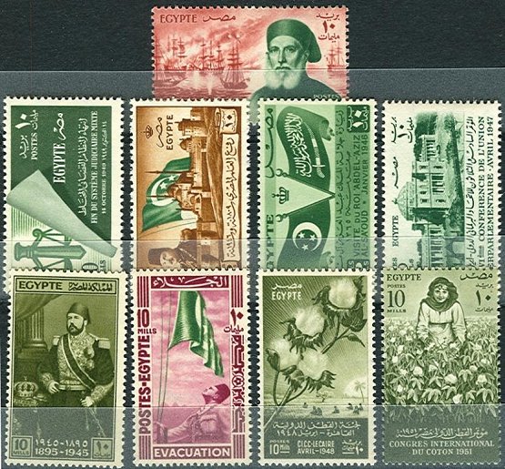 | 746 | 1945-51 9 Different Commemoratives Ex-Royal (each stamp has the Arabic 'Qubbah Palace' on the back as a guarantee it came from the Royal Collection), all superb MNH  | £20.00 |