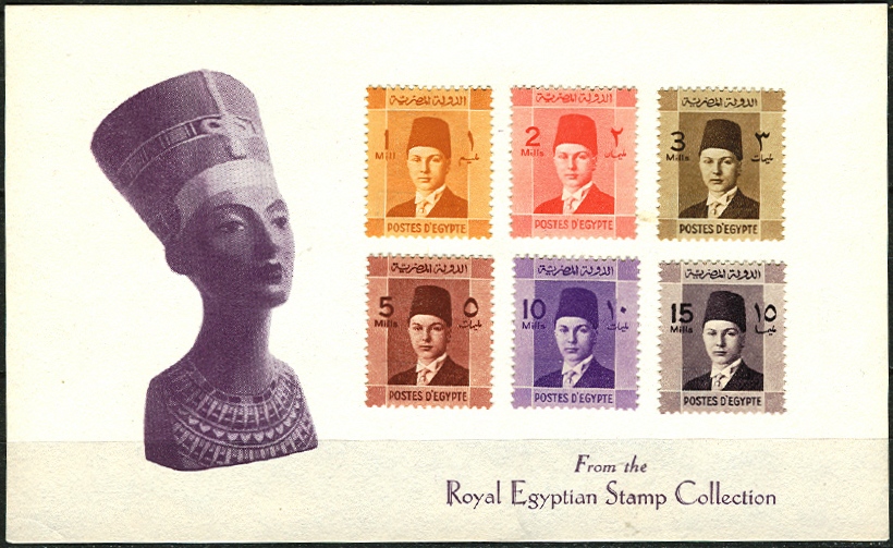 | 756 | 1937 King Farouk (Young) six different values as issued with scarce shades on card  | £30.00 |
