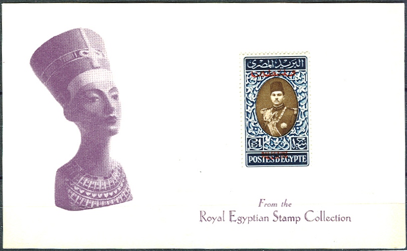 | 741 | 1952. From the Royal collection… a rare chance to acquire the 30m Farouk Marechal with “King of Egypt and Sudan” overprint in brown (colour trial; only 100 exist). Stamp mounted on certificate of authority and validation  | 50.00 |