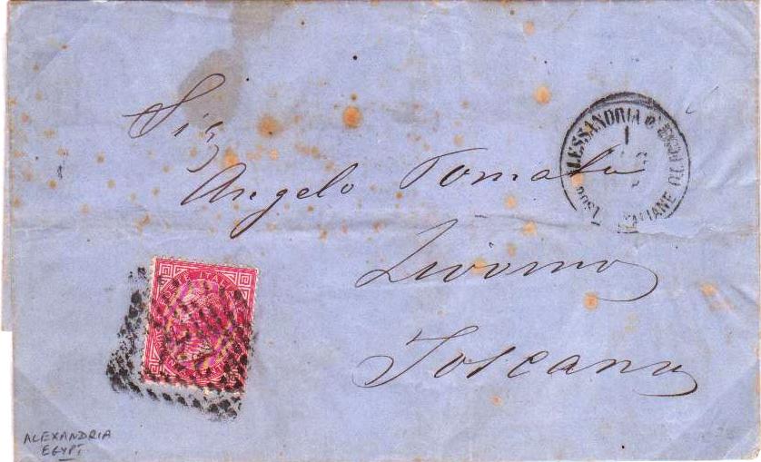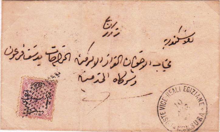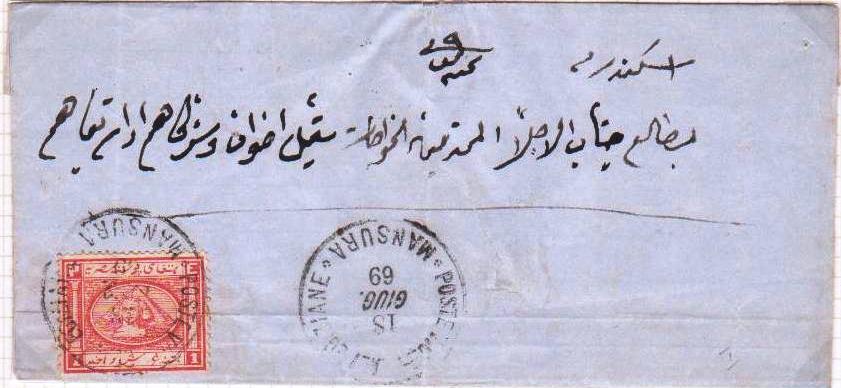 | 19 | 18 Jun 1869, 1pi of 1867 issue on Arabic-addressed folded letter to Alexandria with Poste Vice Reali Egiziane Mansura CDS. Alex arrival behind the same day  | £25.00 |