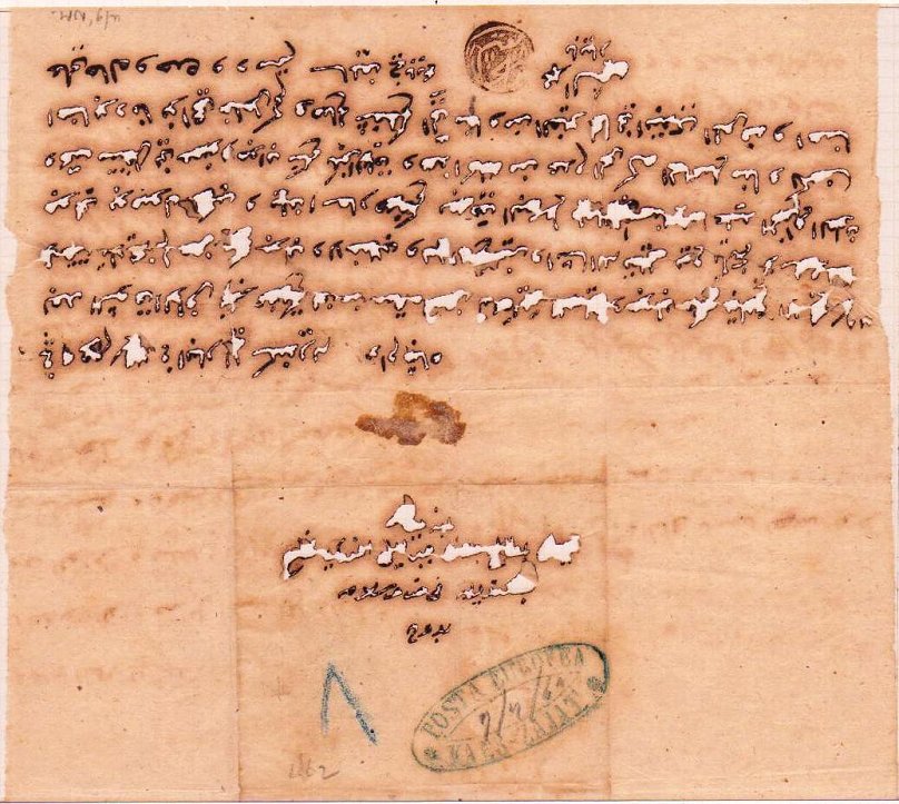 | 17 | 7 Jul 1864, unfolded letter sheet addressed in Arabic showing Type III Posta Europea cancel of Kafr Zajat with manuscript A for Alexandria alongside - and corrosive effect of the acid ink used at the time  | £20.00 |