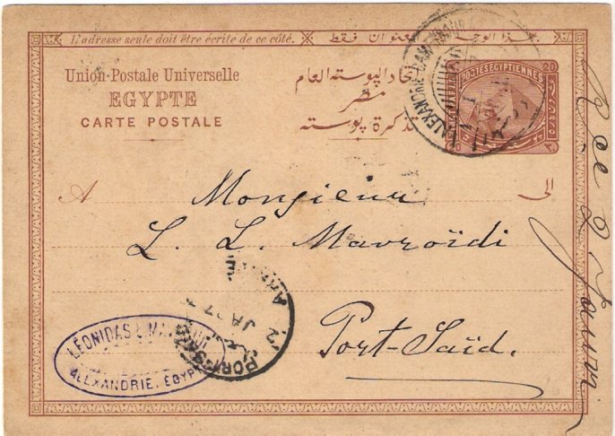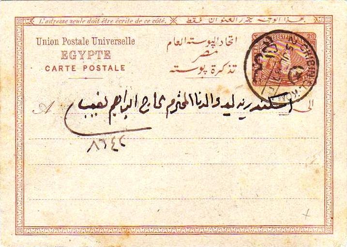 | 40 | 1879 5 para stationery postcard (NP SPC1 $10, Magdi C1 $15), Arabic addresses with spot-on CDS of Chibin el Kom star/crescent 25 JL 87  | £6.00 |