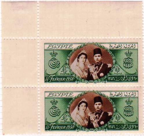 | 44 | 11 February 1938, King’ s Birthday (SG 272 £190, NP C82 $110, Magdi 77 $175), beautiful mint corner pair mounted only on selvage. Unusual  | £70.00 |