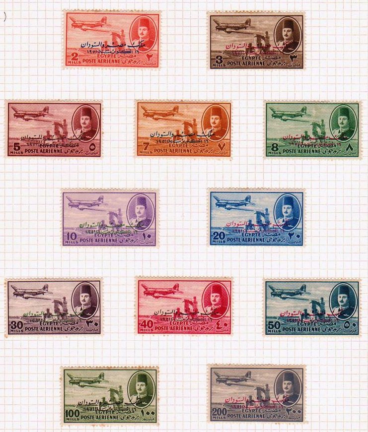 | 45 | 1952, complete Farouk air set of 1947 overprinted with King of Egypt and the Sudan. 12 stamps, all fine mint and mounted on page (SG 392-403, NP A40-51, Magdi 45-56)  | £12.00 |