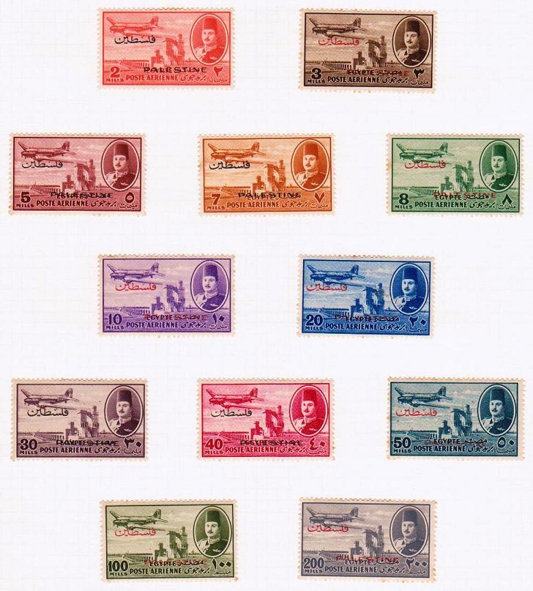 | 46 | 1947, Farouk Air Mail issues of 1947 overprinted bilingual Palestine. 2m-200m, full set of 12 (SG 20-31, £29), 12 stamps, all clean mounted mint  | £7.00 |