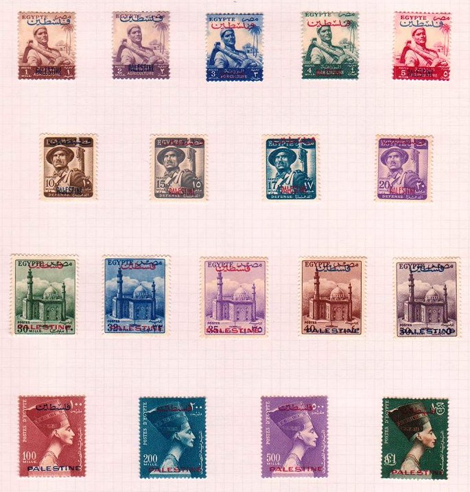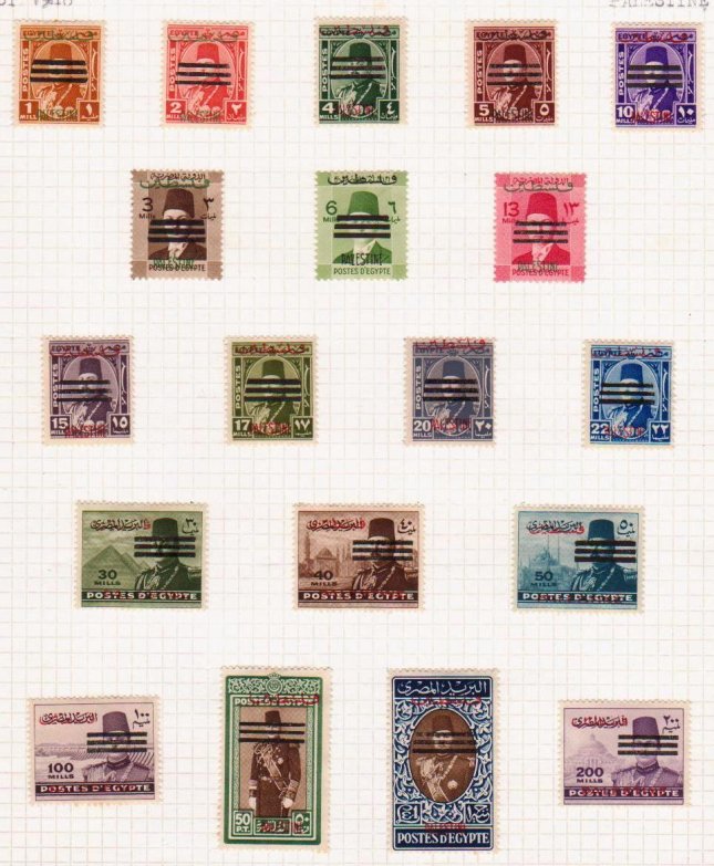 | 50 | 1953, Boy King and Marechal definitive issues overprinted bilingual Palestine, full set of 19 (1m-£E1, SG 32-50 £250) with Farouk barred out, all clean mounted mint  | £55.00 |