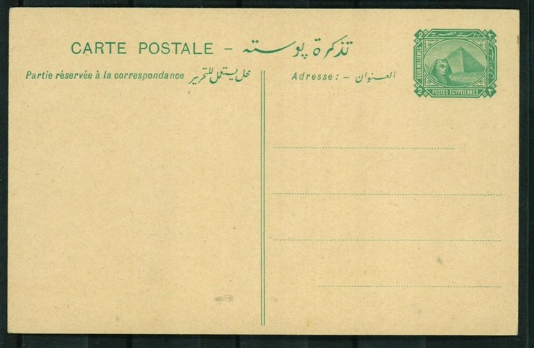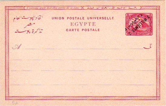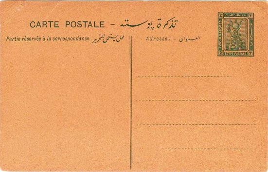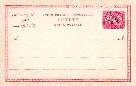 | 73 | Postcard. 1916, 3m on 2m surcharge, var broken Arabic letter on card (NP SPC24a $100, Magdi C24a $250), uprated with 1m DLR and used from Bacos 25 XII 16 to Italy. Wavy-line wartime censor on face, Alex transit and message in French behind. Return address Station Bacos. Very unusual  | £80.00 |