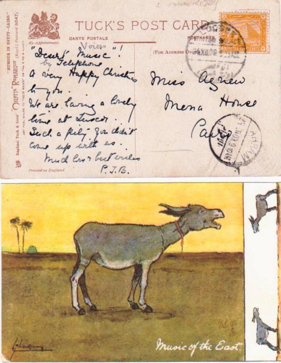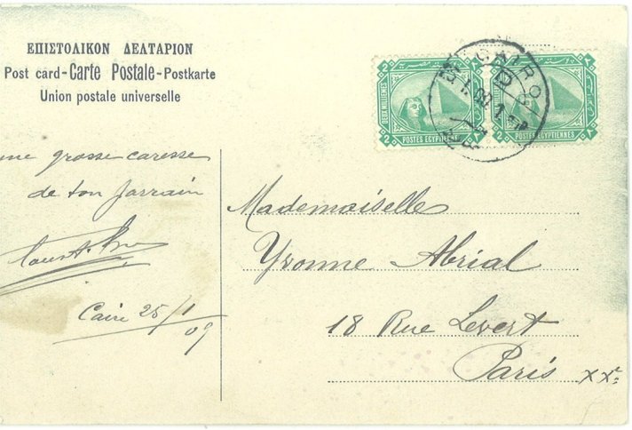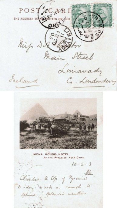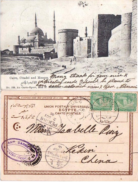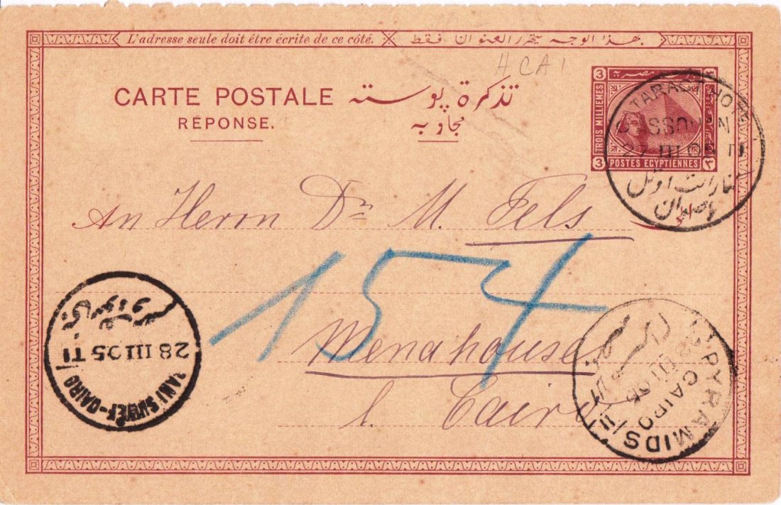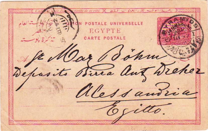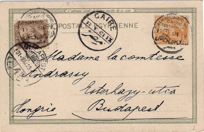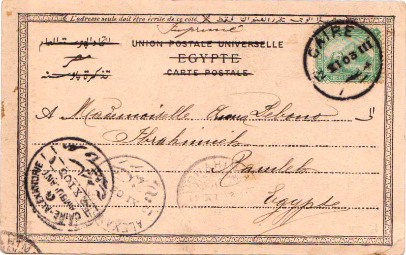 | 524 | 12 XI 03, b-w postcard Pyramides et palmiers, franked 2m DLR for Ramleh and sent from Cairo via Caire-Alexandrie TPO with crescent and star (Type 2A3.1). Unusual clean  | £14.00 |