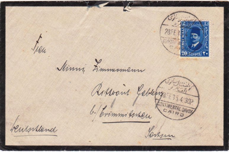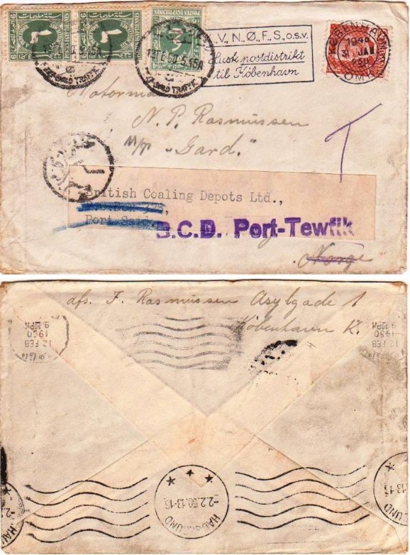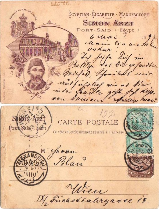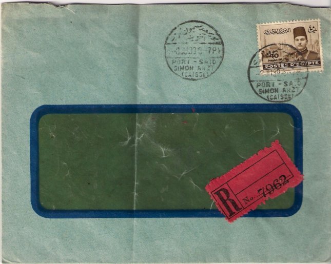 | 452 | Simon Arzt (Caisse) on Registered window envelope of The Simon Arzt Stores! Wax seals, Port Said R, and arrival Leipzig on back. Vertical fold  | £4.00 |