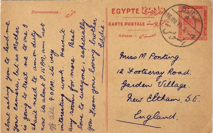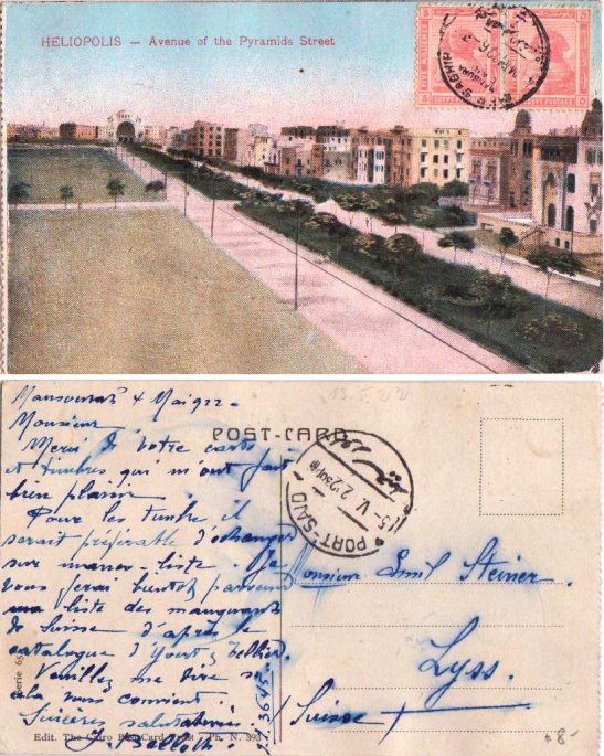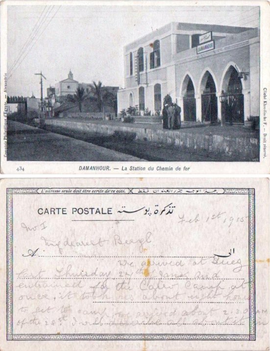 | 502 | 13 SE 15, Tourist postcard showing Alexandria railway station, sent from Attarine/Alexandria via Alexandria/H to Bournemouth  | £8.00 |