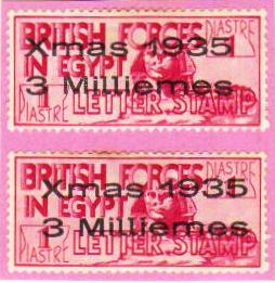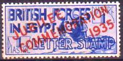 | 496 | 3 JL 56, as last generally, but forged stamp is 5m no-Farouk Air with Palestine opt inverted  | £10.00 |