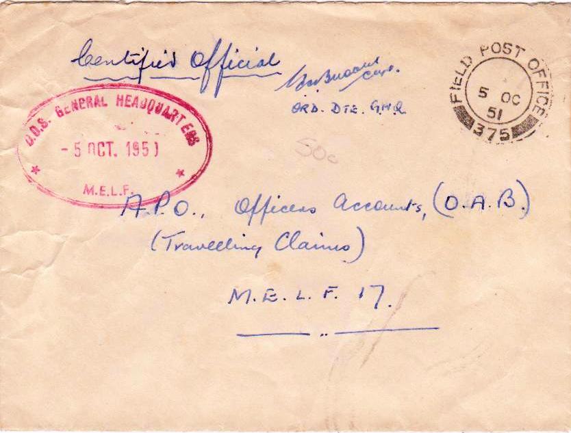 | 508 | 1949-1966, lot of four small envelopes, all Army connected, showing military and military censor markings  | £10.00 |