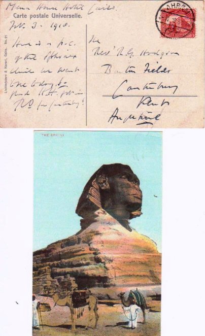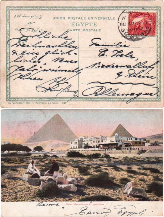 | 461 | Mena House: horiz card by Mena Photo Store-Pyramids unused but small cachet indicating purchased at Hotel, clean  | £5.00 |