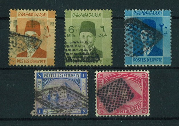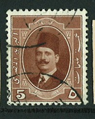 | 79 | 1946, 4m Farouk Marechal with filigree interior (NP SEN 39 $50, Magdi E47 $100). Two used examples on Peter Goodwin album page, both with blue CDS  | £32.00 |