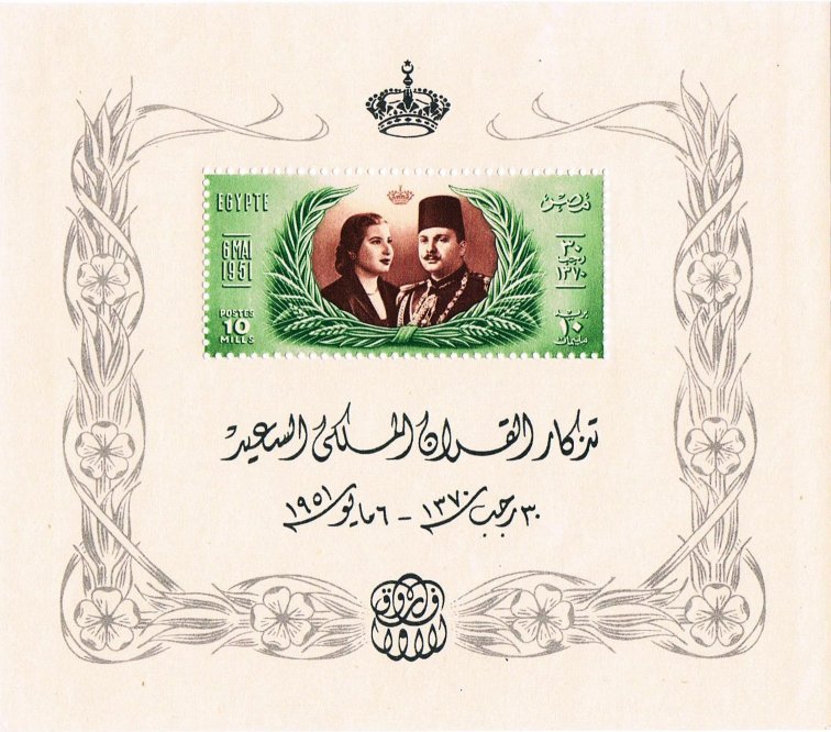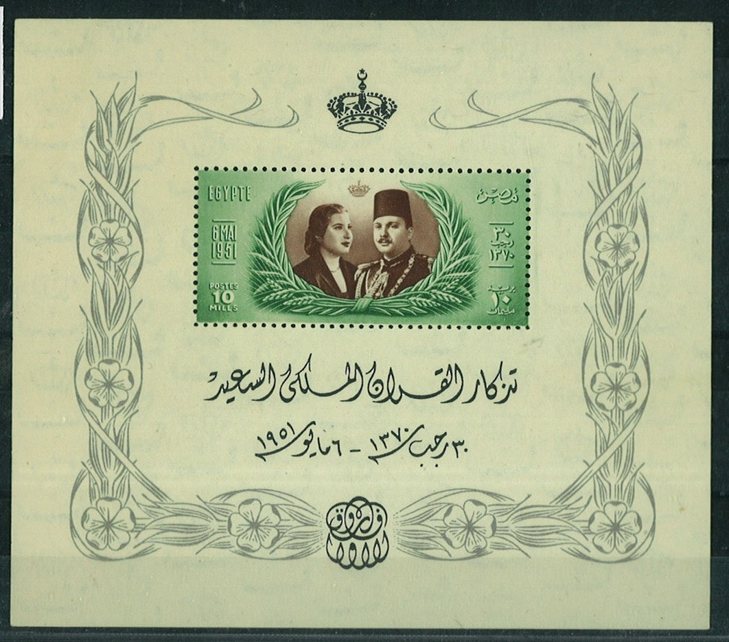 | 60 | Let sheet. 1939 Boy King 5m, Ar wmk (NP SLS11 $80, Magdi L11 $140). Pristine mint but faint pencil marks  | £40.00 |