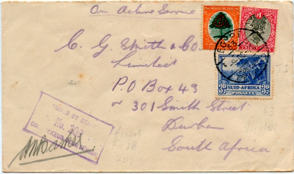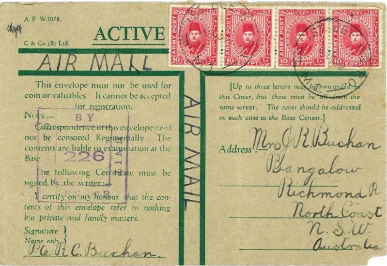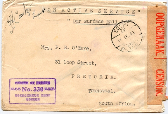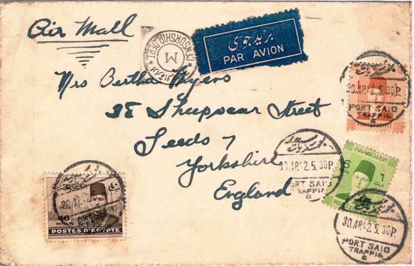 | 476 | Boy King air cover franked 47m, CDS Port Said Traffic and Star 30 AP 52 (4 strikes), civil censor to Leeds  | £2.00 |