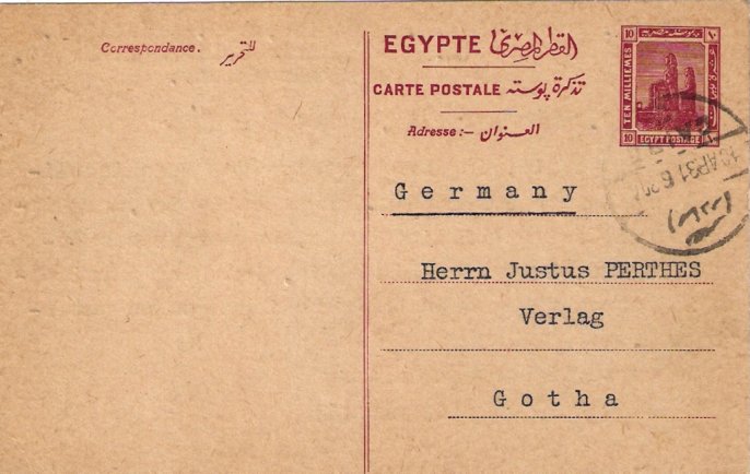| 516 | 18 AP 27, folded Official note from Mit Ghamr to Kafr el Meqdam (cartouche) via Rural Service Mit Ghamr-Miska (Murphy p.100) and TPO line Mit Ghamr- El Zagazig (Type 7A3)  | £12.00 |