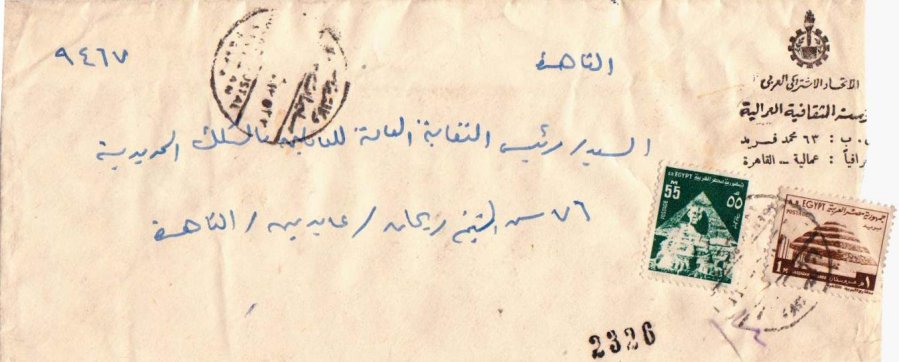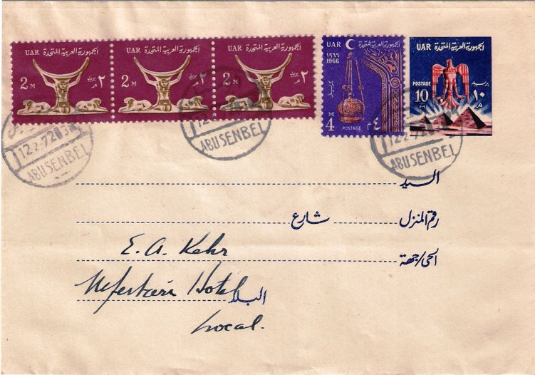 | 520 | 22.12.74, Arabic-printed cover sent from Postal Agency Soliman Pasha in Cairo to Abdeen, franked with 55m plus extra 1 milliéme stamp to pay for medical resources. This extra tax charged on all letters sent in December  | £8.00 |