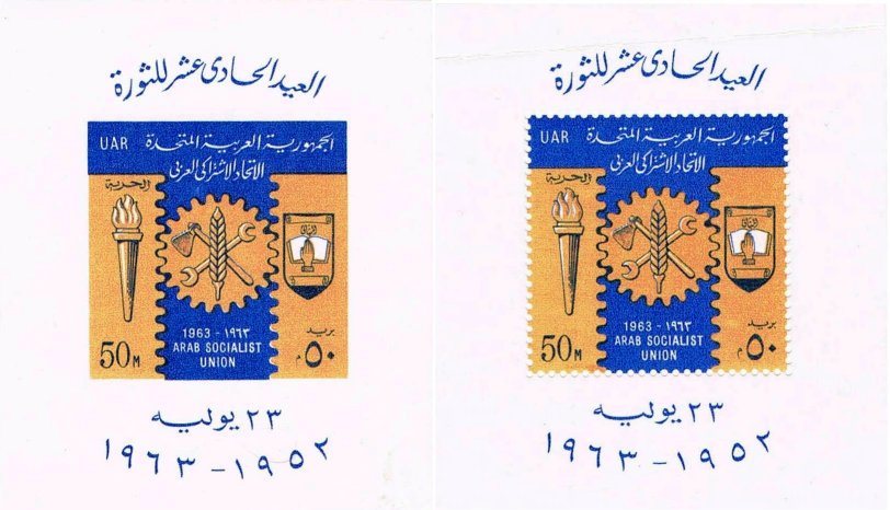 | 484 | 1962 Arab Socialist Union, MS714/715 and imperf. One mounted, other has a minor crease. Cat £5.50  | £2.00 |