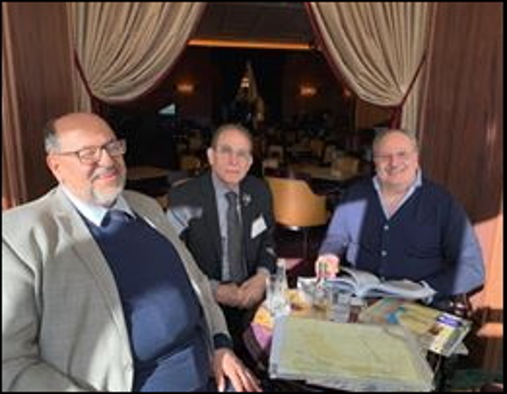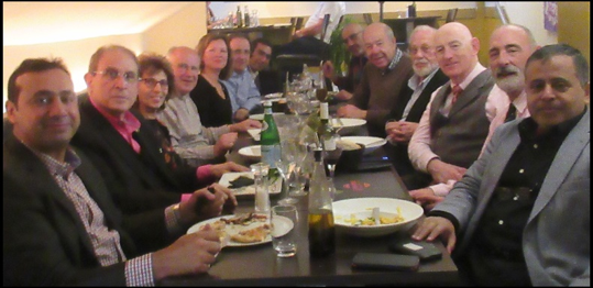 Study Circle members enjoyed a meal in the environs of the exhibition. From left: Ashraf Nabil, Sherif Samra, Lena and Sami Sadek, Lada and Hany Salam, Ahmed Nabil, Adel Hanna, Bill Hedley, FEPA president, Joe Chalhoub, Lucien Toutounji, Jon Aitchison, Greg Todd, Atef Sarian.