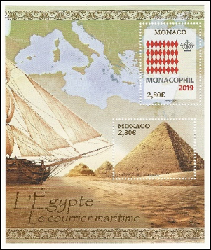 In all, 24 members of the Circle – 18 of them from Egypt itself - showed 138 frames detailing virtually every highlight of Egyptian philately, as well as significant literature. They were joined in exhibiting by 12 internationally acclaimed philatelists who have long recognised the very special appeal in Egypt and its stamps. • We are indebted to Sami Sadek and Jon Aitchison for the following insight into the spectacle, and for many of the illustrations. Monacophil is a biannual non-competitive philatelic event hosted by the Club de Monte-Carlo. The 2019 event had two main themes, in addition to a young philatelist exhibition: one was the Treasures of Egypt and the second was Maritime postal history. These were held on the Terrasses de Fontvieille, the venue that hosts Prince Albert’s personal and extensive antique motor vehicle collection, which includes a 1903 De Dion Bouton. Just opposite was the Musée de Timbres et des Monnaies, where the Club set up an overwhelming special exhibition of the 100 world’s most
