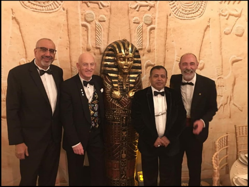 The former monarch of Egypt was thoroughly immersed in looking at exhibits as visitors thronged the hall Guests at the Gala Dinner were astonished to find the dining salon embellished with decorations reflecting Ancient Egypt.