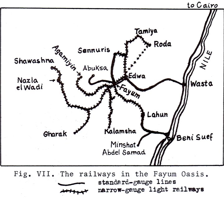 Besides the foregoing list, a number of "lines" are referred to in the 1914 Egyptian Postal Guide. It is not clear whether TPO lines or merely railway lines are meant, but in nearly every instance, the route indicated is covered by a recorded TPO of slightly different terminal designation. For example, ABU QIR-SIDI GABR is virtually the same as the known ABU QIR-ALEXANDRIA; Sidi Gabr is a suburb of Alexandria, and is the point where the line to Abu Qir branches off from the main line to Tanta. The list below is presented for the record, in case examples may turn up. LINES CITED IN THE POSTAL GUIDE, 1914