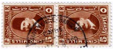 | Q30 Febuary 26, 2007 member 611 “GOUVEMENT ETRANGER – CAIRE” Does anyone have any information on a cancellation I have on a pair of 10m Second Fuad which appears to read “GOUVEMENT ETRANGER – CAIRE”? I am aware that this translates to “Foreign Government” (although then I think it should correctly be “GOUVERNEMENT”). The example could be 1924 or 1934. By whom or where would this handstamp have been used? On re-examining my Fuad cancellations I found another pair, of the 5m value, and it becomes clear that the cancellation I thought read “GOUVEMENT ETRANGER” should actually be “MOUVEMENT ETRANGER” (perhaps “FOREIGN TRAFFIC”). I attach a scan of the part cancellation, in which more of the wording is visible although the first character is unclear. Unfortunately the Arabic and date line are missing. I should still be grateful if anyone could tell me what this cancellation really is, the usage and who used it. ? |