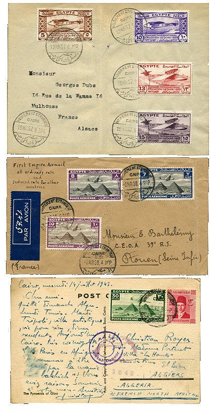 | R1 September 6 2007 member 575 I have one card and two covers with the cancellation MOUVEMENT ETRANGER – CAIRE, dated in the years 1937, 1938 and 1943. But like the original questioner, I know no more about the cancellation and would welcome more information.