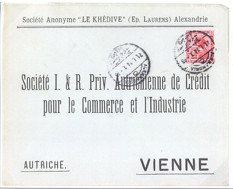 Peter Smith's book states that Austria was included in the concession rate scheme with Italy and the UK in 1908. The QC 207 December 2003 suggests the Austrian concession rate was effective 1 October 1907. Take your pick of either date but I have not come across a cover to Austria with the concession rate. All my covers to Austria have a 1 piastre letter rate for the first weight stage and 6 milliemes for the second weight stage (if required). Has anyone seen a concession rate cover to Austria? If so, then a copy should be sent to the QC editor for publishing. Also, what is the authority for the concession rate included in the publications mentioned above? |