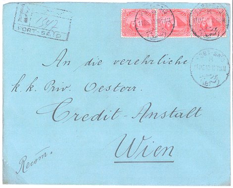 R1 June 26, 2007. member ESC 74![]() ![]() An ordinary cover and a registered cover are shown in dated January , 1914, and December, 1913, respectively. Covers franked with the 5 mills. of the 1914 issue should be especially scarce, for Austria entered World War I later in 1914, and correspondence would have been cut off. In-going covers showing the reduced rate from Austria to Egypt should also exist, but I have not seen any. Such covers would probably be franked with the 10 heller rose (instead of the 25 heller blue). Examples may be lying unrecognized in dealers' stocks! Member 230 states that he had encountered only covers with the UPU rate of 10 mills., all of which were dated before 1912. The number of such covers and the origins (many are from banks) strongly suggests that the reduced rate of 5 mills. was not in effect when these covers were sent. They cannot simply be cases of the sender being unaware that a special rate was available. Nevertheless, it has been stated that the reduced rate to Austria came into effect in 1908. A hypothesis that could explain the inconsistency is that whereas negotiations between Egypt and Austria may have begun in 1908, the eventually effective date may have been as late as January, 1912 (all of my covers with the 5-mill. rate are dated between1912 and 1914). As for documentation, I have notes made from the 1914 Postal Guide, in which it is recorded that the reduced rate was at that time in force, and applied to Great Britain and most of the British Empire, Italy and colonies (including Tripolitania, Eritrea, and Italian Somaliland (Benadir). I have never seen a cover with the reduced rate to any Italian colony; they must be quite rare, as the quantity of mail from Egypt to them was small. |