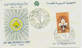 | Q41 June 23 2007 member 595 The 1968 50th. anniversery Boy Scout and Mexico Olympics stamps were issued on the same day, November 1. I have first day covers of both with the correct cancellation but I also have one of the Scout FDC using the wrong cancellation, that of the Mexico Olympics. My question is has this been seen or recorded anywhere before. Is it a common error or did I stumble onto something special? |