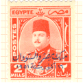 After the overthrow of Farouk all stocks were overprinted with three bars obliterating his face.