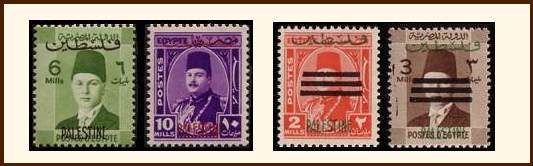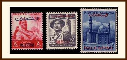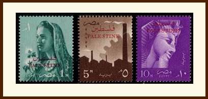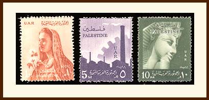 From 1960 the stamps issued for the Gaza Strip were printed specially using the current Egyptian stamps but in different colours and with the word "Palestine" inscribed in the design, both in English and Arabic (below).