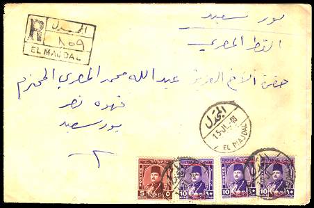 Cover from Majdal, one of the Palestinian towns held by Egyptian troops for only a short while in 1948. Such covers are rare, while those of the Gaza Strip for Gaza and Khan Yunis (1948 to 1967) can be found fairly readily.